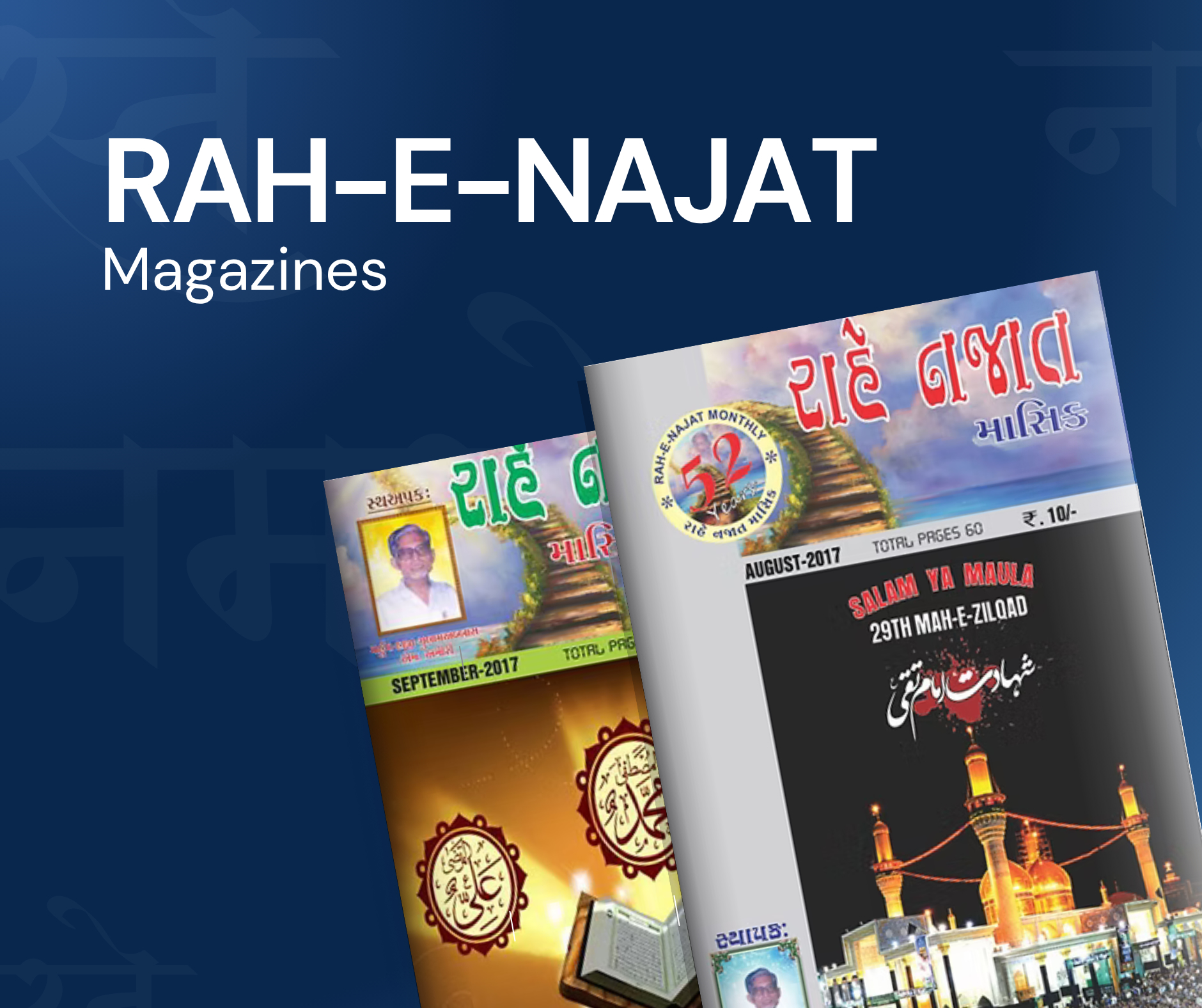 His magnum opus in public outreach was the monthly magazine Rahe Najāt (“Path of Salvation”), first launched in 1310 AH (circa 1893 CE). Through Rahe Najāt, he addressed theological, ethical, jurisprudential, and spiritual issues pertinent to Khoja communities in India, East Africa, Burma, Oman, and beyond.